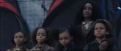 Rue lived in District 11 prior to the 74th Hunger Games. She was the eldest child in her family, with five younger siblings. She worked from sunrise to sunset in the orchards in District 11, alongside the other citizens of her district. Despite her size, she was able to jump from tree to tree in the orchards, even on the most slender branches. She could scale the tallest trees in District 11, allowing her to see the flag that signaled quitting time, after which she would sing her four-note song. The tune would be picked up by the mockingjays in the area, which would spread the message through the orchards that the working day was over. Rue claimed that these mockingjays were her special friends.